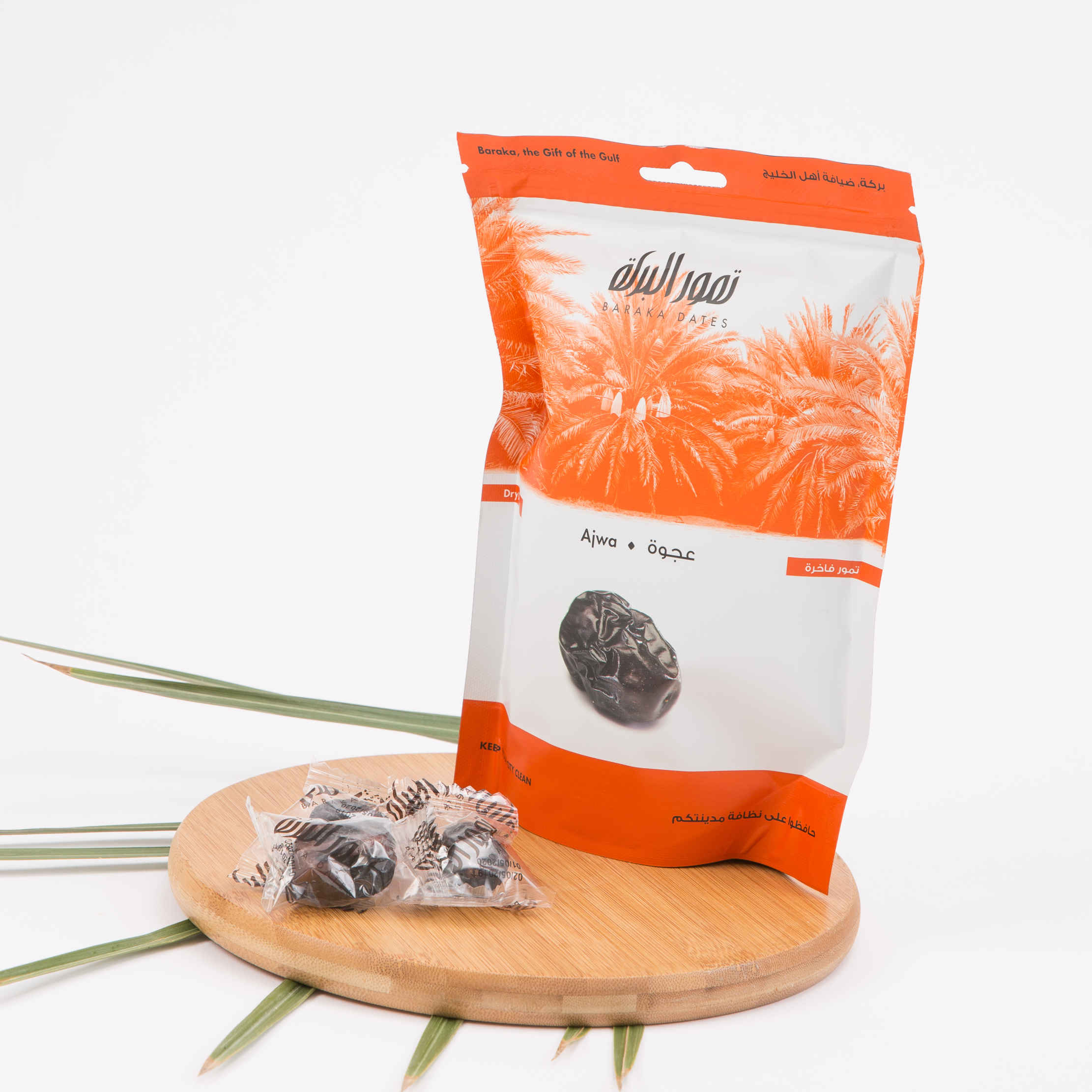 "تمور العجوة هي نوع محدد من التمور تزرع في المدينة المنورة. تُحظى بشهرة كبيرة بفضل طعمها الغني ونعومتها، وتتمتع بعدة فوائد صحية. تمتاز تمور العجوة بلونها البني الداكن وملمسها المجعد قليلاً، وطعمها الحلو المعتدل. معبأ في كيس قابل لإعادة الإغلاق "