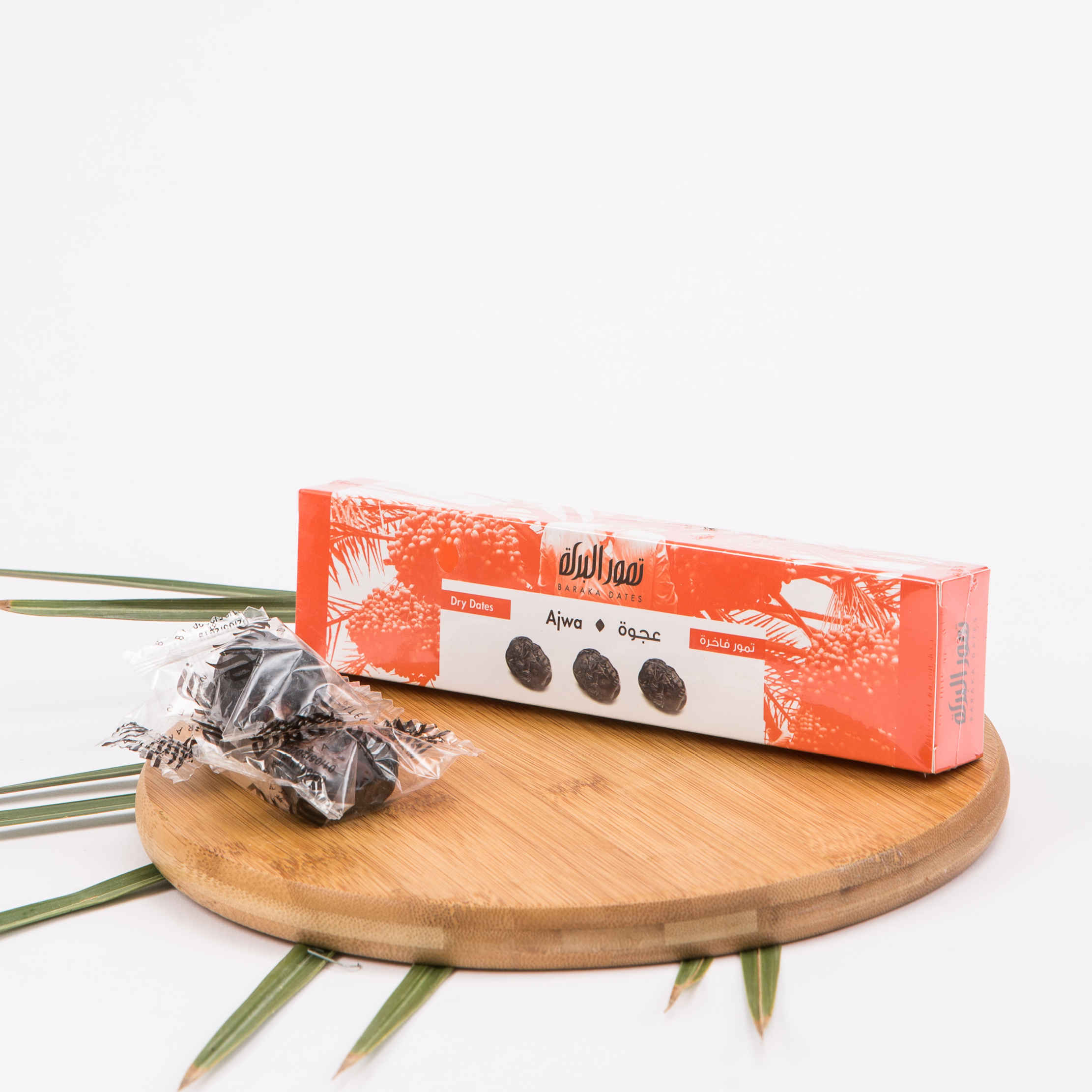 تمور العجوة هي نوع محدد من التمور تزرع في المدينة المنورة. تُحظى بشهرة كبيرة بفضل طعمها الغني ونعومتها، وتتمتع بعدة فوائد صحية. تمتاز تمور العجوة بلونها البني الداكن وملمسها المجعد قليلاً، وطعمها الحلو المعتدل. معبأه بعلبة