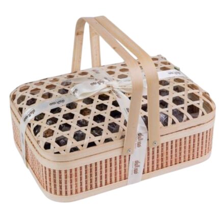 هذه الصينية تحتوي على تشكيلة رائعة ومتنوعة من التمور اللذيذة، منها الصقعي المحشي باللوز والخضري المحشي باللوز، وتمر الخلاص بالعسل، بالإضافة إلى الخلاص المغمس بالسمسم، و صحن الهردة الشهي الذي يضيف لمسة لذيذه الى التجربة