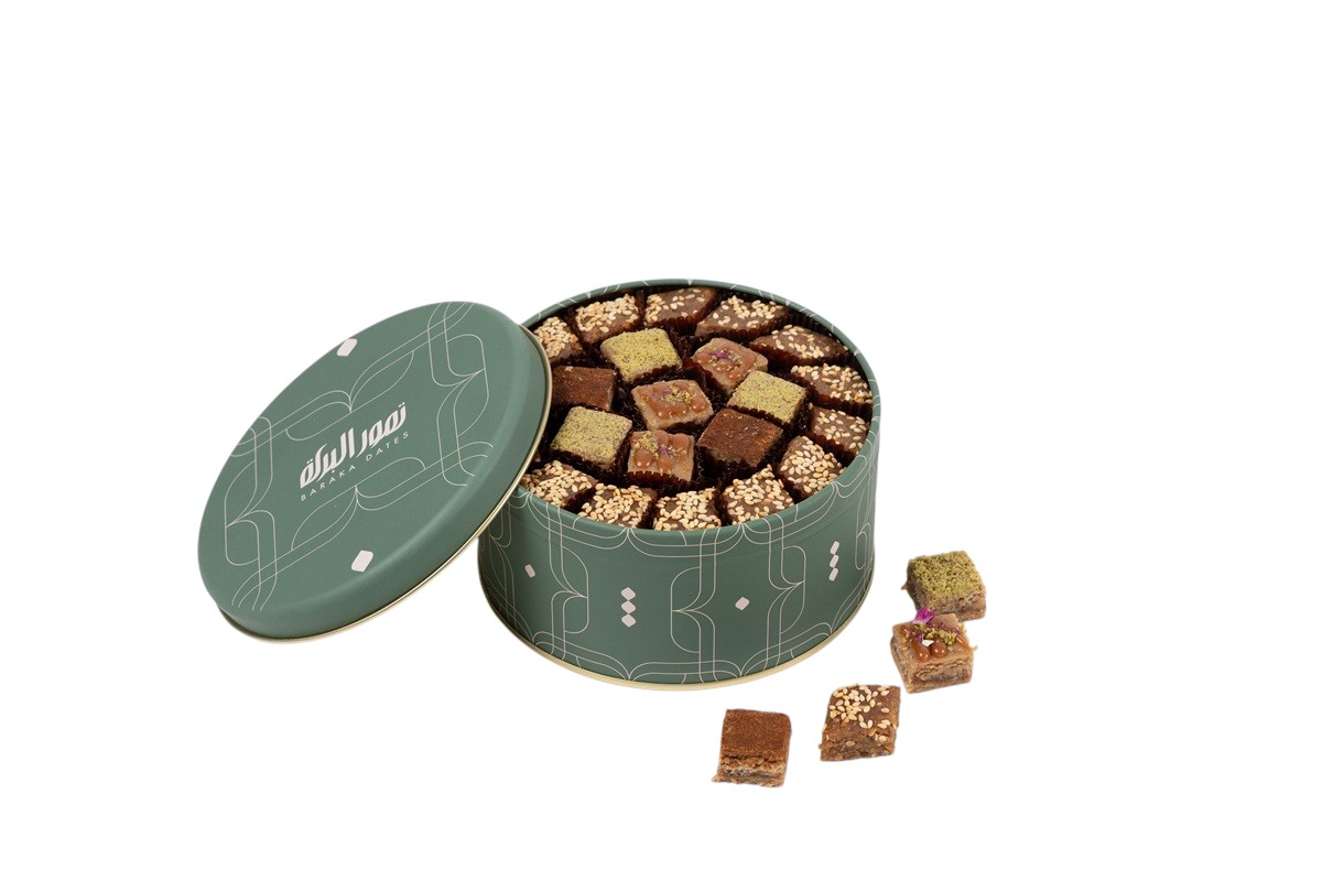 علبة هدايا تضيف لمسة جمالية لكل مناسبة هذه العلبة تحتوي على مزيج من الرنجينا بالنكهات مختلفه والخبيصة. معبأ في علبة معدنية فاخره