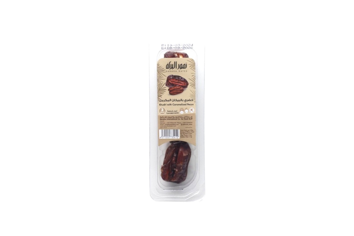A healthy snack on the go. Contains 3 pieces of Khudri Caramelized Pecan.
